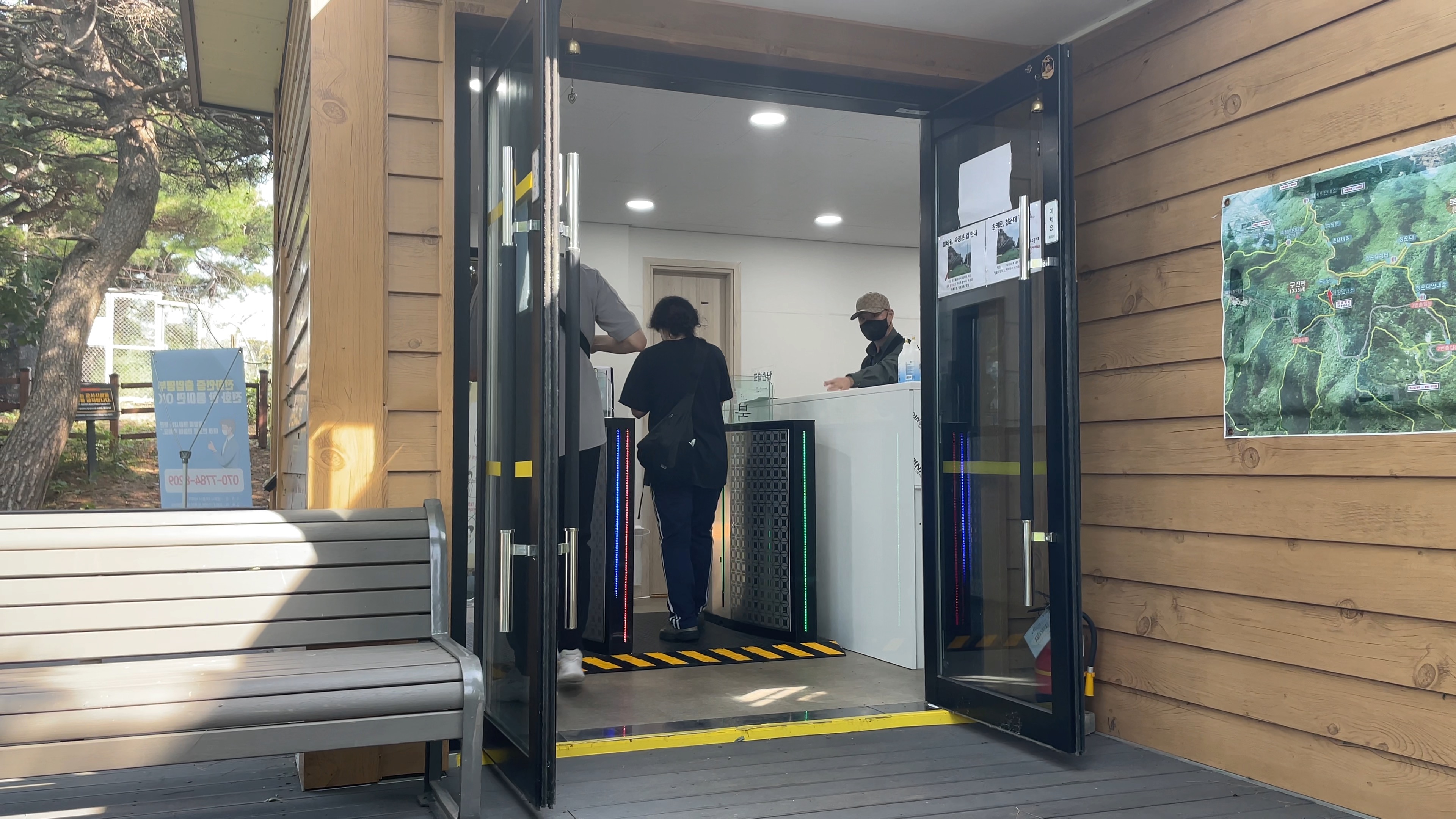 계단도 많았고, 산길도 관리가 잘 되어있어서 바닥의 질척거림 없이 쾌적한 산책이었어요. 1번 출입문에서 탐방로를 따라 3번 출입문, 청운대 안내소가 있는 곳까지는 중간에 한 차례 쉰 것까지 포함해서 20분 정도 걸렸습니다. 3번 출입문에는 앞에서 말씀드린 대로 주차가 가능하고 화장실이 있습니다! 그리고 바로 청운대 안내소가 있는데, 여기서부터는 출입증을 받아서 지하철처럼 태그 후에 입산하실 수 있습니다. (입산 시간은 아래 내용을 참고해주세요.)