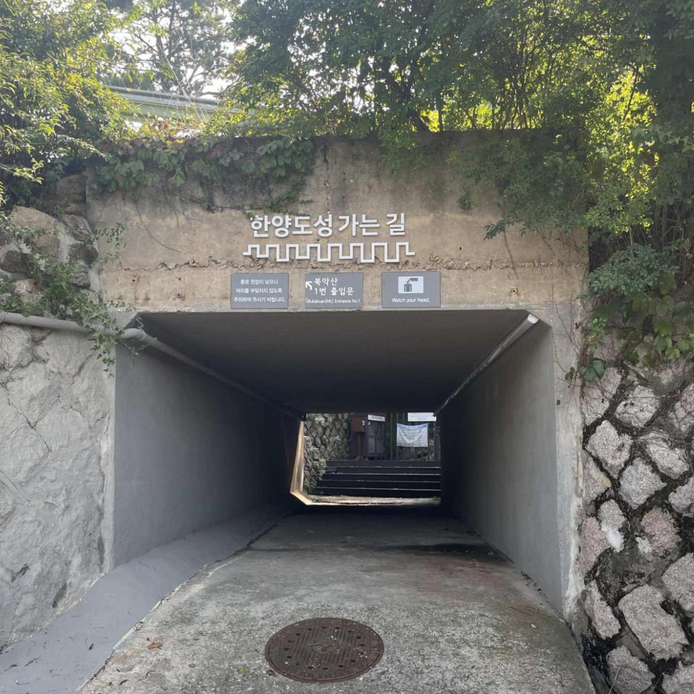 이렇게 출입문이 있다는 게 다시 봐도 신기하네요. 출입증이 있는 것도! 다만 출입증의 목걸이가 관리는 되는 것인지는 의문이 들었어요. 코로나가 땀 같은 체액으로도 전파가 된다고 본 것 같은데... 공용의 출입증이 괜찮은지, 별도 소독 절차가 확실히 이행이 되는지는 의문이 들었습니다. 뭐... 괜찮겠죠? 이미 마인드는 위드 코로나입니다. 14분 정도 더 내려가면 4번 출입문을 통해 북악 스카이웨이 길로 나갈 수 있습니다. 확실히 북악 스카이웨이 중간에 있어서 이쪽에서 탐방을 시작하기는 좀 애매한 위치로 느껴졌어요. 여기서부터는 북악 스카이웨이의 옆 숲길을 따라 하산했습니다. 내려가면서 이 길을 오르는 자전거 마니아 분들이 많이 보였어요. 경사를 열심히 오르는 는 모습에 제가 힘든 느낌이 들면서도 대단하게 느껴졌습니다. 역으로 경사를 따라 아주 빠른 속도로 시원하게 내려가시는 분들도 계셨는데, 너무 재밌게 보이면서도 저는 속도감 있는 걸 살짝 무서워해서 저러다가 혹시라도...라는 생각이 들긴 했습니다. (물론 사고는 나면 안 되죠) 모두들 안전한 라이딩 하시면 좋겠어요! 15분 정도 내려가면 아까 갔던 3번 출입문이 있고, 다시 거기서 10분 정도 가면 1번 출입문으로 돌아오게 됩니다. 하산은 계단을 내려가는 것이다 보니 쉬지도 않고 훨씬 빨리 이동했어요.