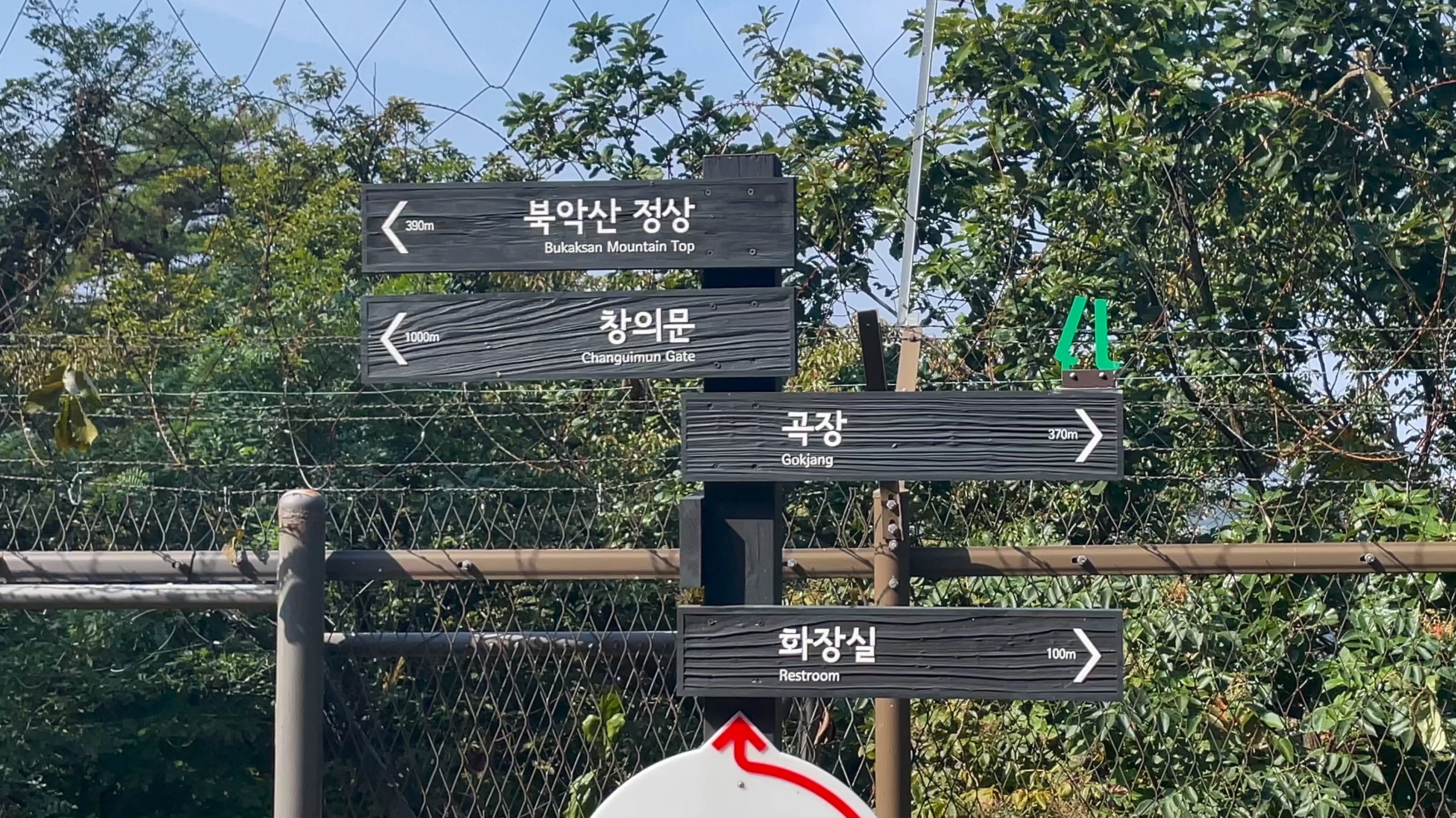곡장으로 올라간 길 반대로 넘어가면, 곡장 안내소가 있고 그 길로 쭉 내려가면 4번 출입문으로 향합니다. 블로그에서 소개해줬던 대로 코스를 가보는 것이 목표여서 일단 쭉 가보기로 했어요. 곡장 안내소는 곡장을 내려오면 금방 있답니다.
