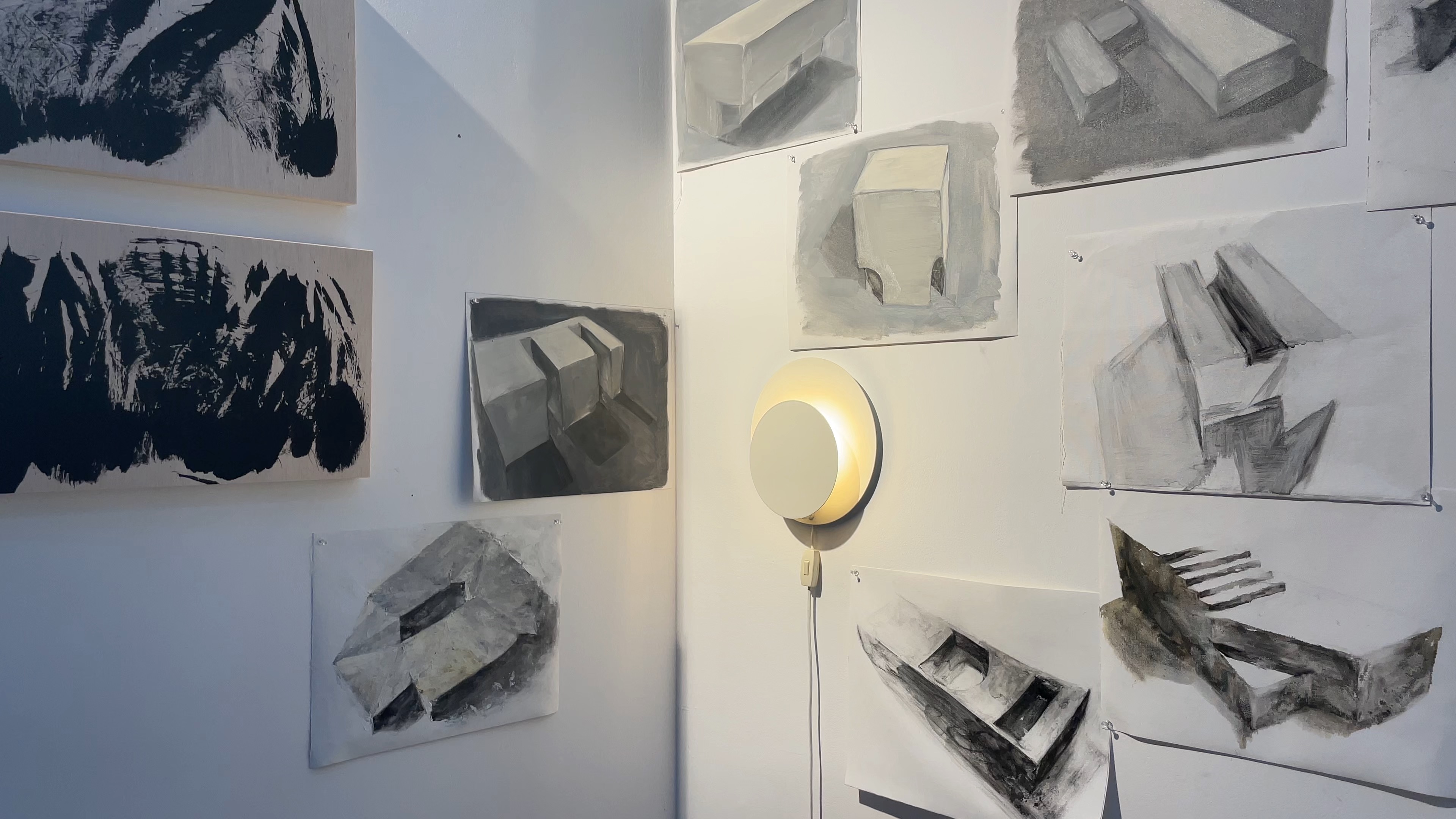 갤러리라는 본연의 공간 역할도 충실히 해낼 수 있다는 듯이, 곳곳에서 마주치는 회화도 공간의 풍성함을 더해주었는데요. 액자에 걸린 또 다른 세계와 벽면을 가득 채운 무채색의 네모들은 조명과 어우러져 여유를 즐기고 싶은 오후 공간에 딱 맞는 안락함을 선사해주었습니다.