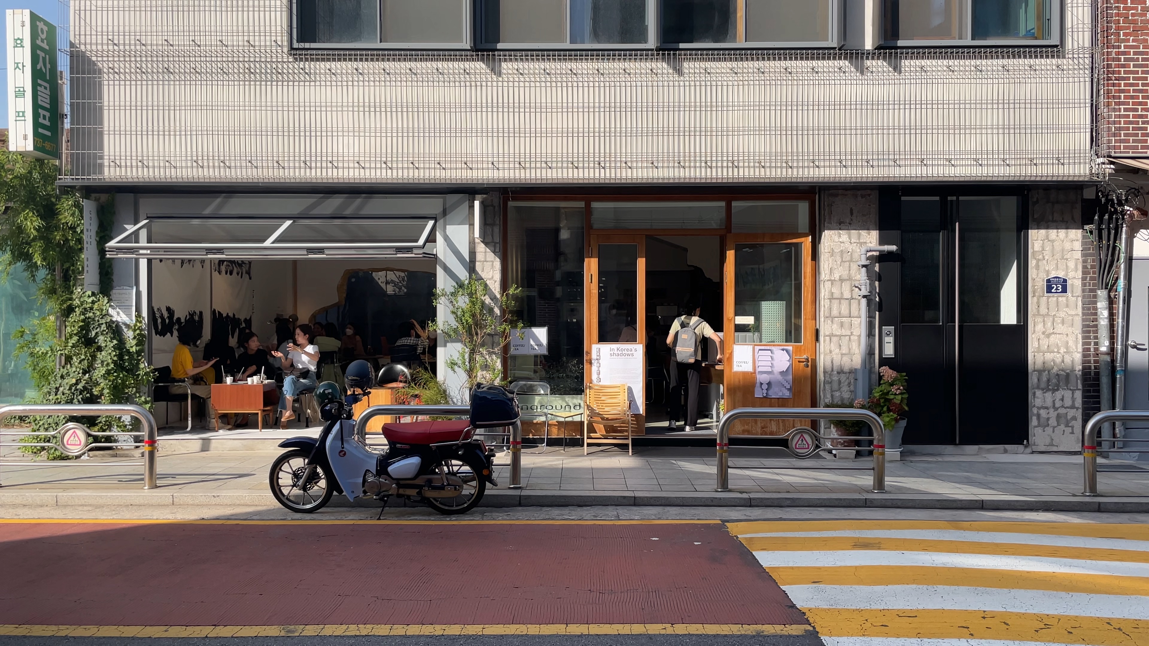 온그라운드, 지도에는 온그라운드 지상소로 나오는 이곳은 갤러리이자 카페였습니다. 골목을 돌아다니면서 우연히 찾은 것 치고는, 아주 상당한 규모의 카페이면서 우연히 찾을 수밖에 없을 정도로 간판이 없는 깔끔한 카페 입구의 분위기가 마음에 들었어요. 링크해드린 주소는 온그라운드 갤러리를 담고 있는데, 저희가 갔을 때는 전시로 쓰이는 공간 모두 객석으로 활용되고 있었어요. 마치 집을 여러 개 터서 만든 공간처럼 다이내믹하고 미로 같으면서도 체계가 나눠져 있는 다양함이 이색적이었습니다.