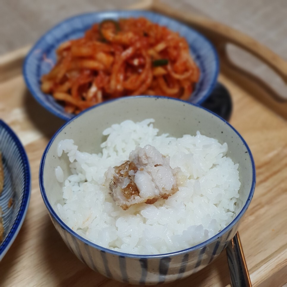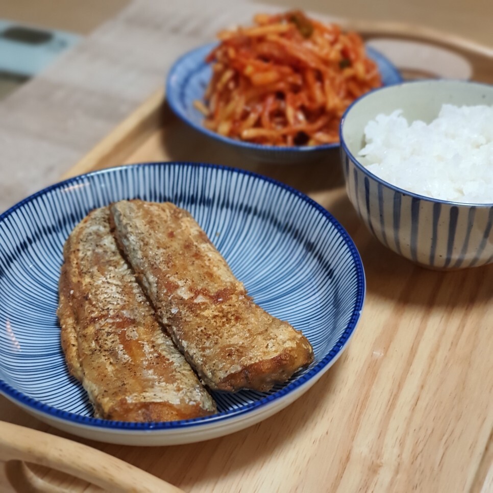 흰쌀밥에 고소한 갈치 살, 어머니가 챙겨주신 무생채까지 더 하면 뭐가 더 필요할까요. (소주?) 포슬포슬하면서도 통통한 살 덕에 한 공기 뚝딱 해치웠습니다. 제가 한건 갈치를 구운 것뿐이라고 느껴지긴 하지만, 나름 잘 챙겨 먹었다고 자부합니다. 지금 봐도 가정식답게 잘해먹었네요. 올해가 가기 전에는 한번 생선을 구워 먹어야겠어요. 갈치는 생각보다 집안에 냄새도 덜 배여서 좋은 것 같아요. 제 최애 생선구이인 간고등어는 사실 냄새 때문에 도전을 못하고 있답니다.