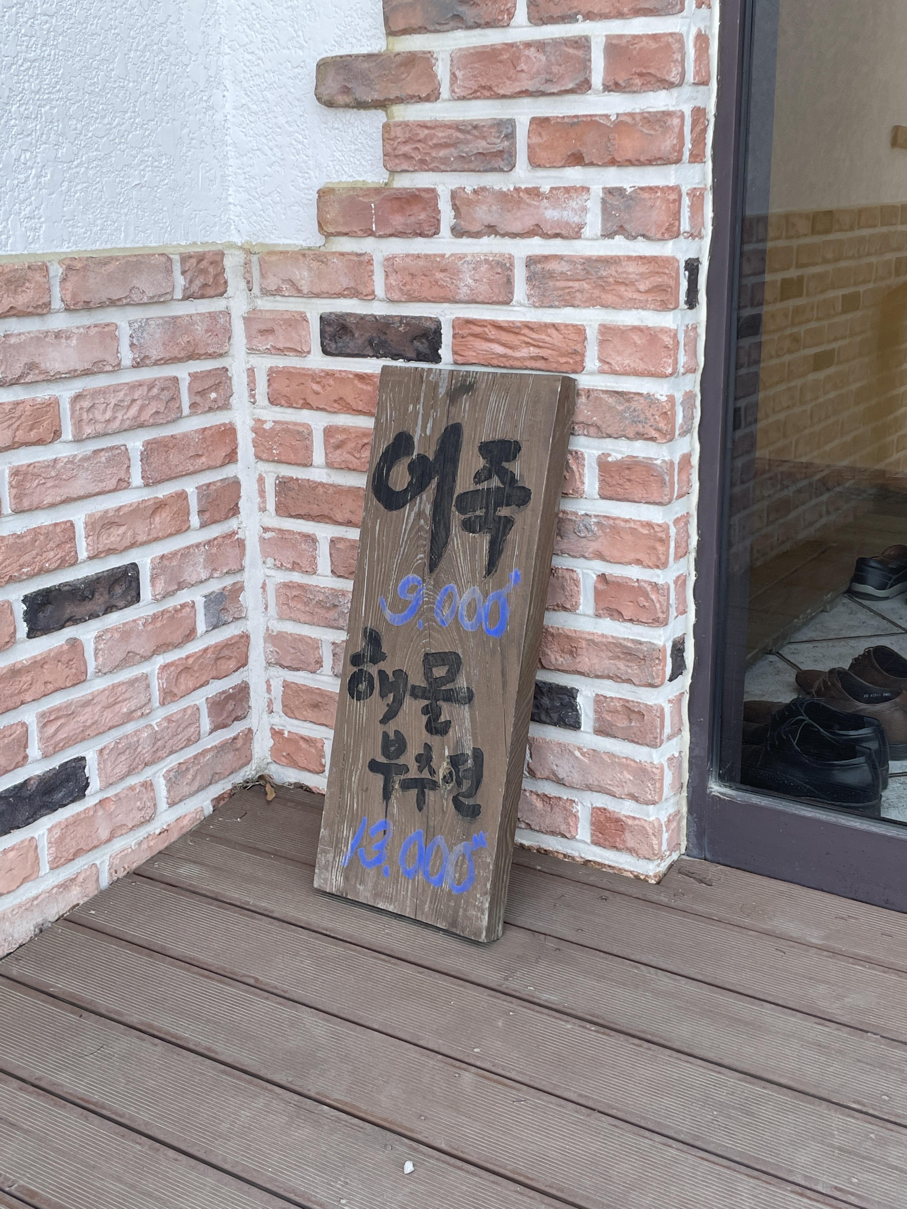 그루터기는 논밭 한가운데에 있어서 그 정취도 좋습니다. 일단, 그루터기 입구부터 간판보다도 메뉴판이 더 눈에 들어오는데요, 식당 들어와서도 보이는 메뉴판들을 보면 메뉴가 참 간단합니다. 어죽과 해물부추전. 제가 전도 정말 좋아하는데요, 물론 먹을 수는 있지만 이건 다이어트를 위해 참았다고 보면 되겠습니다. 교정도 교정이지만 PT도 PT이니까요. 신발을 벗고 들어가자마자, 핫한 점심시간에는 번호표를 주십니다. 손님들이 정말 많이 오시기 때문이죠. 오늘은 점심시간을 살짝 지나서 가서, 들어가자마자 "2개예요?"라고 여쭤보시더군요. 맞습니다, 어죽 2개 드리면 되냐는 것이죠. 그리고 5분 이내로 메뉴는 나옵니다. 나이스한 시스템에 감탄합니다.